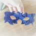 Já que era uma máscara de dragão, não a quis fazer com linhas simples... Escolhi então este molde que encontrei aqui, porque me pareceu mais "dragon like"... Para combinar com o fato usei os restos e tecido azul que tinha.